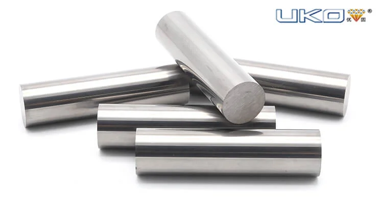 UKO has a complete line of carbide rods in a wide selection of tungsten carbide grades with binders ranging from 6% to 15%, and grain sizes to suit your application. We offer a wide range of tungsten carbide rods, including solid carbide rods (unground rod blanks, ground and polished rods with or without chamfers), rods with coolant holes (central, two straight coolant holes, two helical holes 30°).