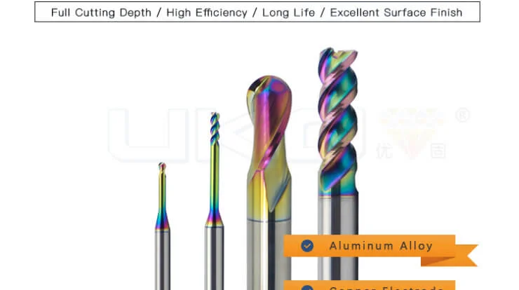 UKU409 0.4 9 14.5 93.2 4000 9.6 Ultra-fine grain size, suitable for processing hardened hard steel, aluminum alloy, CFRP, high wear-resistant material stainless steel, composite graphite, PCB, and plastic.